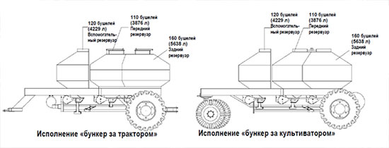 Исполнения: «Бункер за трактором» и «Бункер за культиватором».